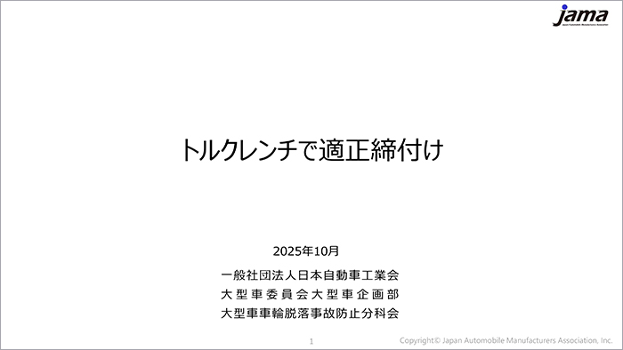 (一社)日本自動車工業会では、タイヤ交換やホイール脱着時の不適切な取り扱いによる大型車の車輪脱落事故が増加していることから、車輪脱落事故防止のための啓発動画、社内研修用の教材や参考資料を掲載した特設WEBサイトを公開しました。