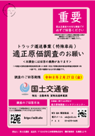 ○トラック運送事業の適正原価に関する実態調査への協力依頼について(国土交通省ホームページ)