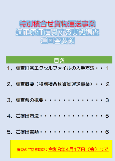 2026/03/19 特別積合せ貨物運送事業の適正原価に関する実態調査への協力依頼について