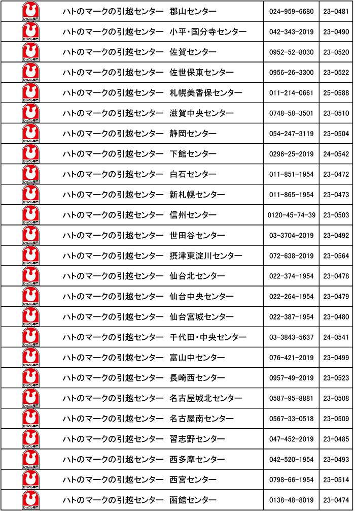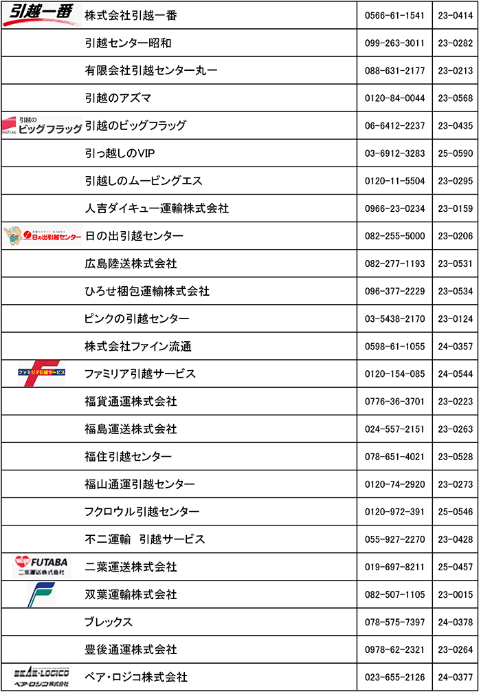 引越安心マーク制度 認定事業者一覧