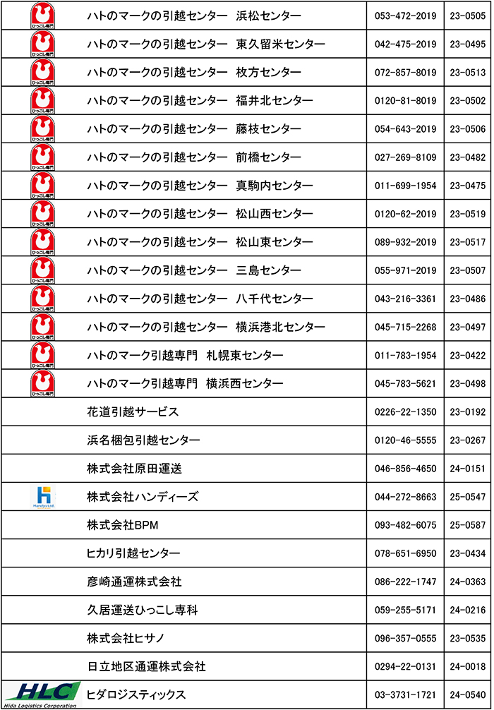 引越安心マーク制度 認定事業者一覧(は行)