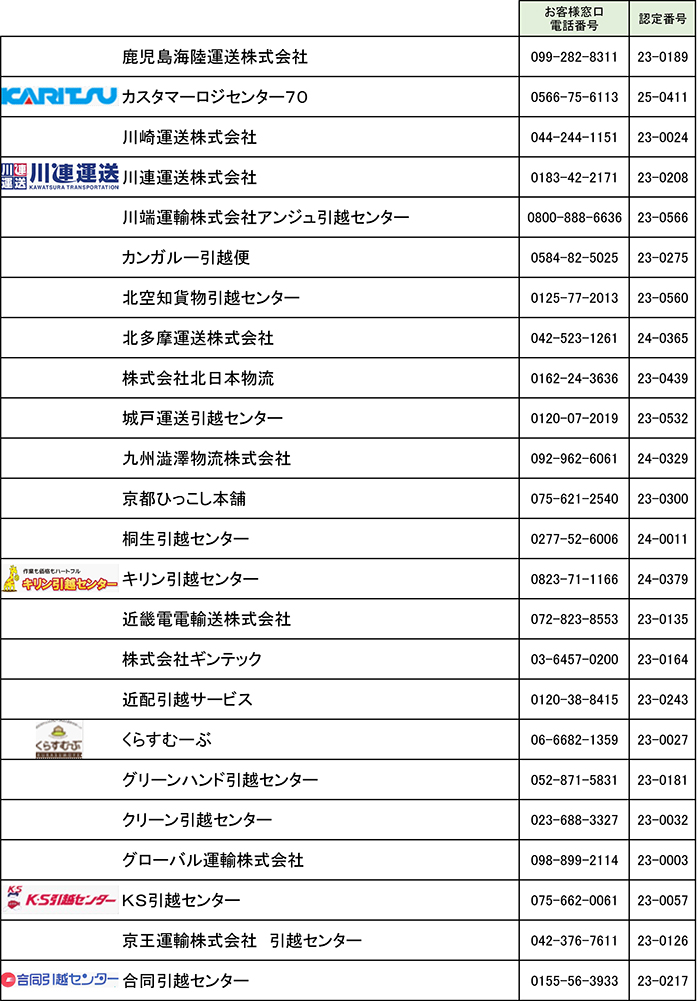 引越安心マーク制度 認定事業者一覧(か行)