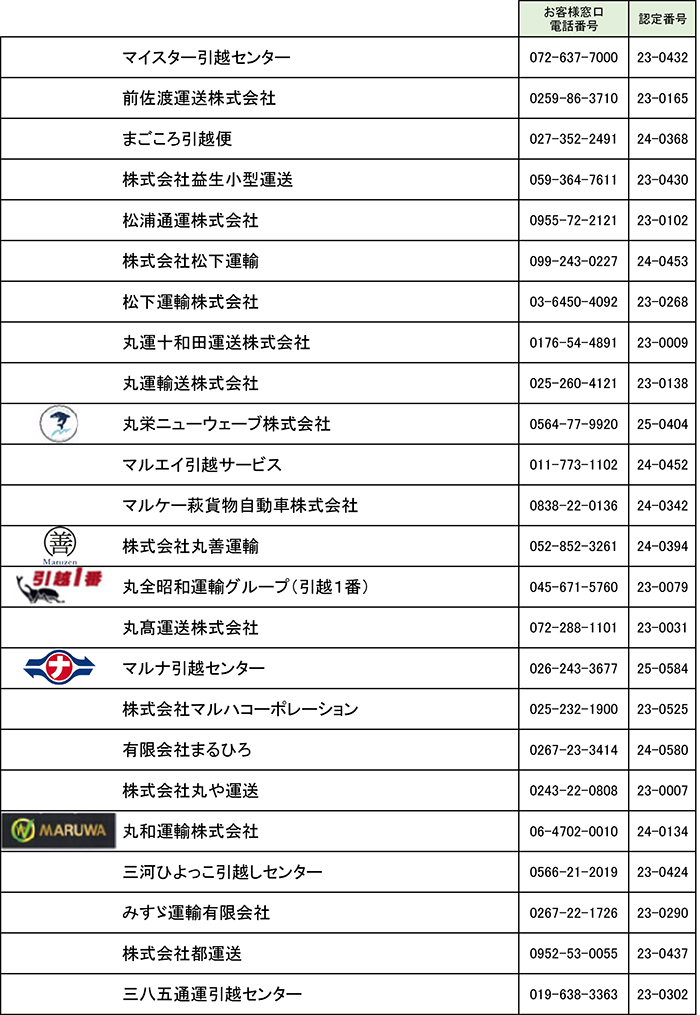 引越安心マーク制度 認定事業者一覧(ま行)