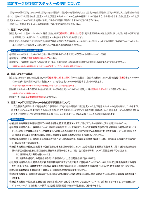 認定マーク及び認定ステッカーの使用について